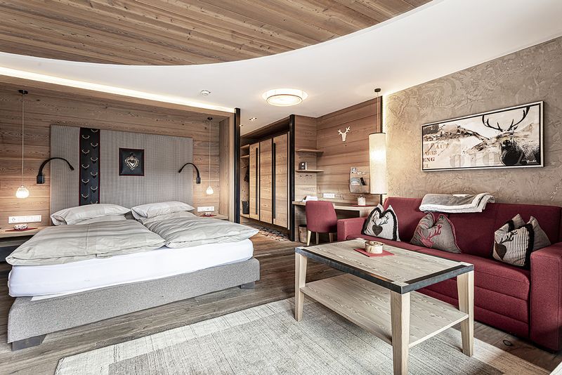 - Kombinierter Wohn-/ Schlafraum mit Doppelbett und ausziehbarer Kuschelcouch