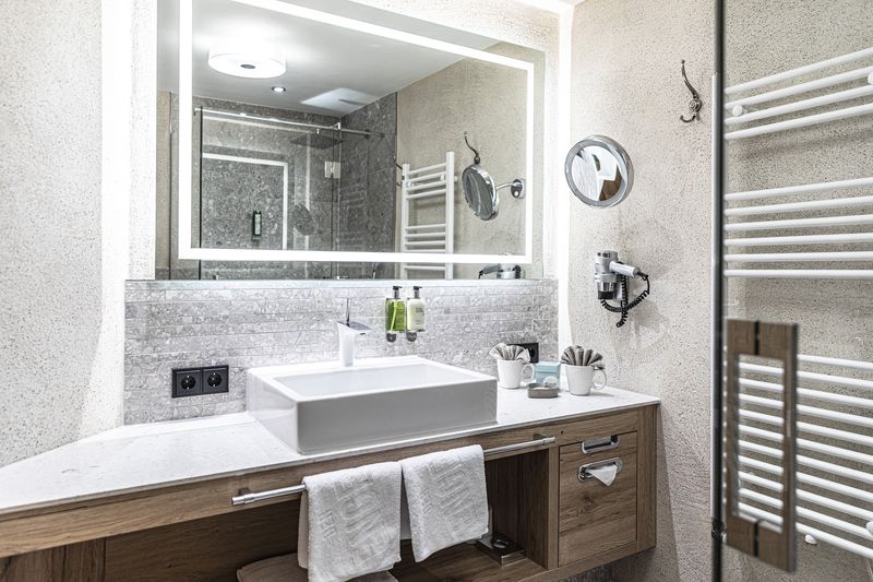 - Wohlfühlbad mit begehbarer Quellwasser-Dusche und WC