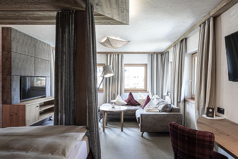 - Kombinierter Wohn-/ Schlafraum mit Doppelbett und Kuschelcouch
