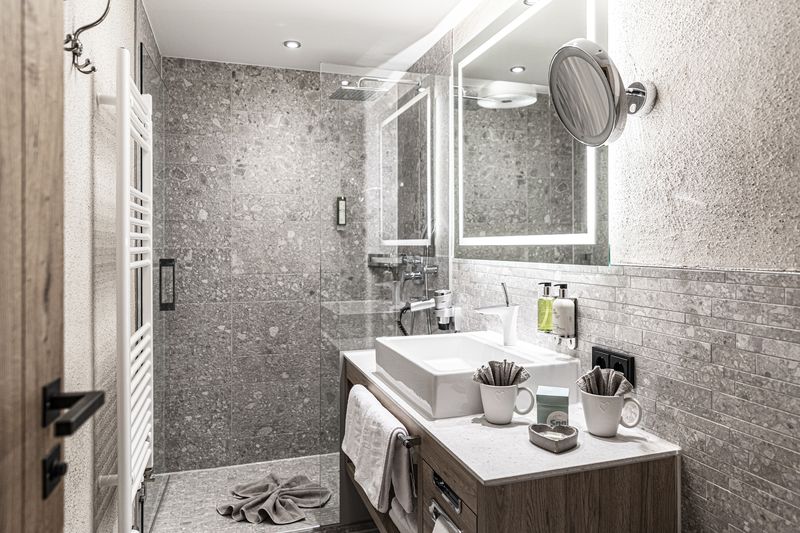 - Wohlfühlbad mit begehbarer Quellwasser-Dusche und WC