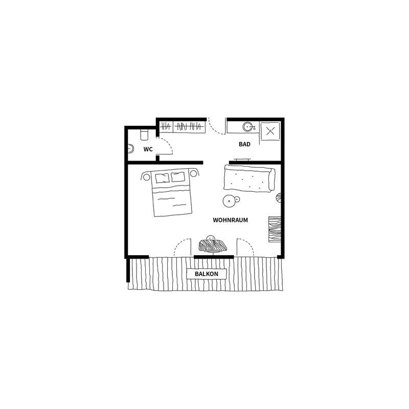 • Kombinierter Wohn- / Schlafraum mit Doppelbett, ausziehbarer Kuschelcouch und Sitzecke