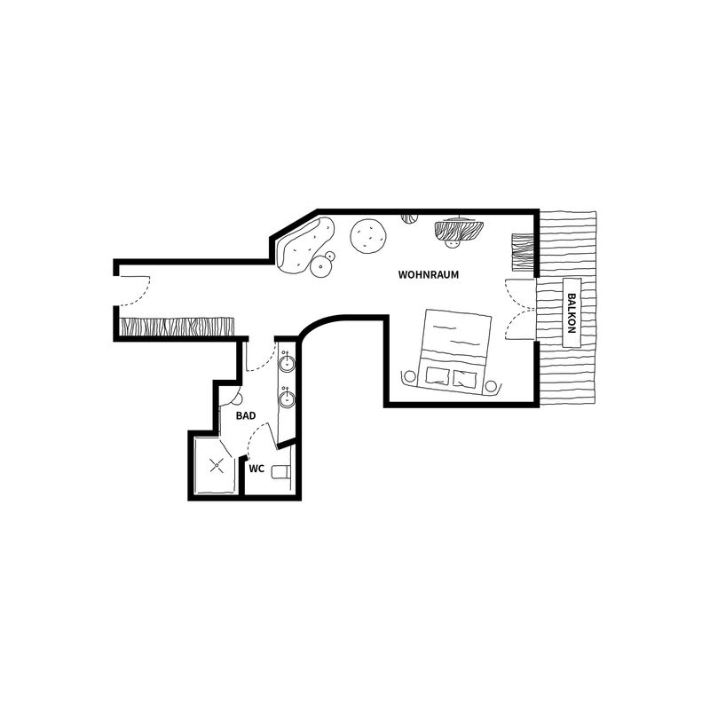 - Kombinierter Wohn-/ Schlafraum mit Doppelbett, Sitzecke und Kuschelcouch