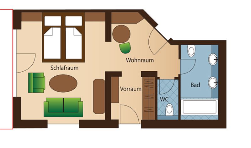- Wohlfühlbad mit Badewanne samt Duschvorrichtung und separatem WC
