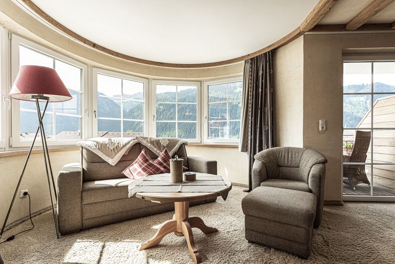 - Zwei Balkone (Ost- und Süd-Ausrichtung) mit Blick auf die Gräner Dorfkirche und das Neunerköpfle
