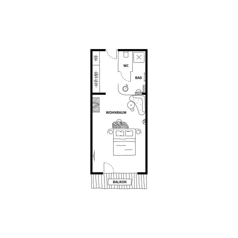 - Kombinierter Wohn- / Schlafraum mit Doppelbett, Kuschelcouch und Sitzecke
